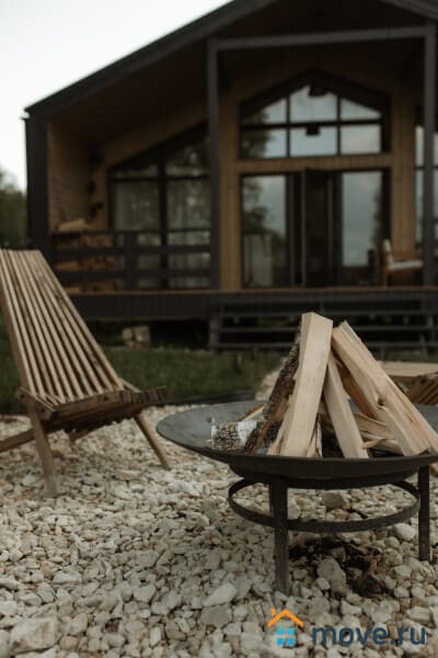 Всё пространство — полностью ваше: без соседей и лишних глаз. Утром можно завтракать на террасе, днём гулять по зимнему лесу, а вечером слушать потрескивание дров у костра.