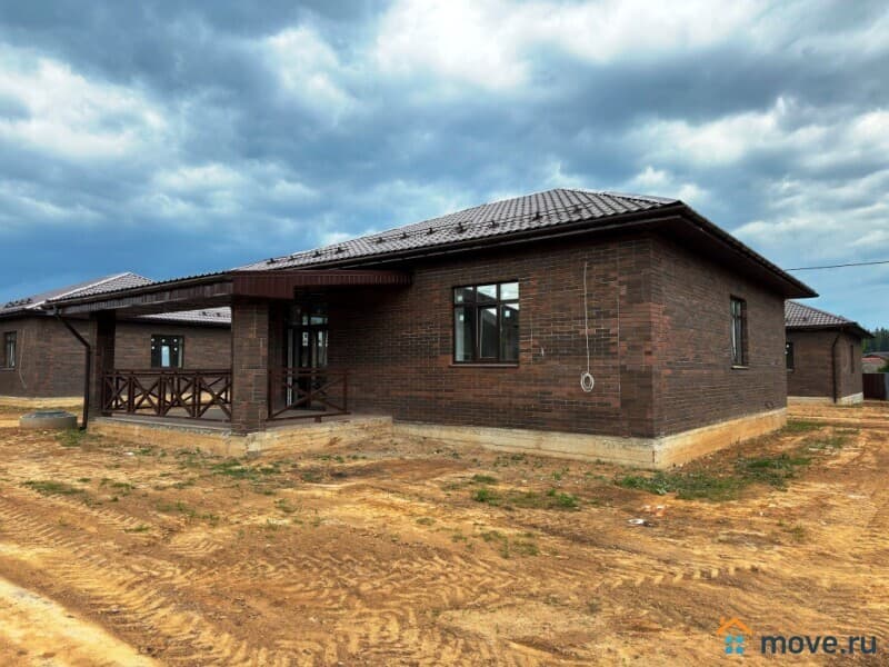 Одноэтажный дом на 3 спальни из газобетона под ключ. В доме 3 спальни, два санузла, терраса, кухня-гостиная.