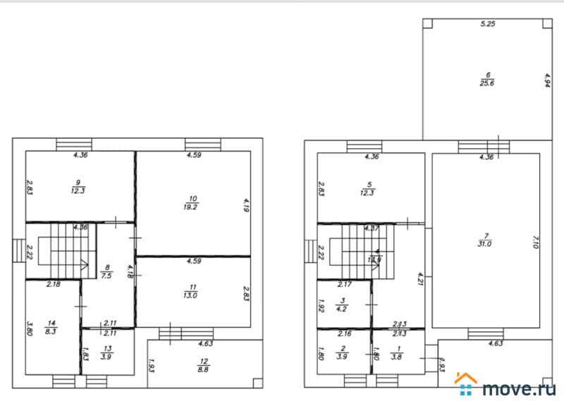 -На 2-ом этаже: 3 комнаты, выход на балкон, санузел.