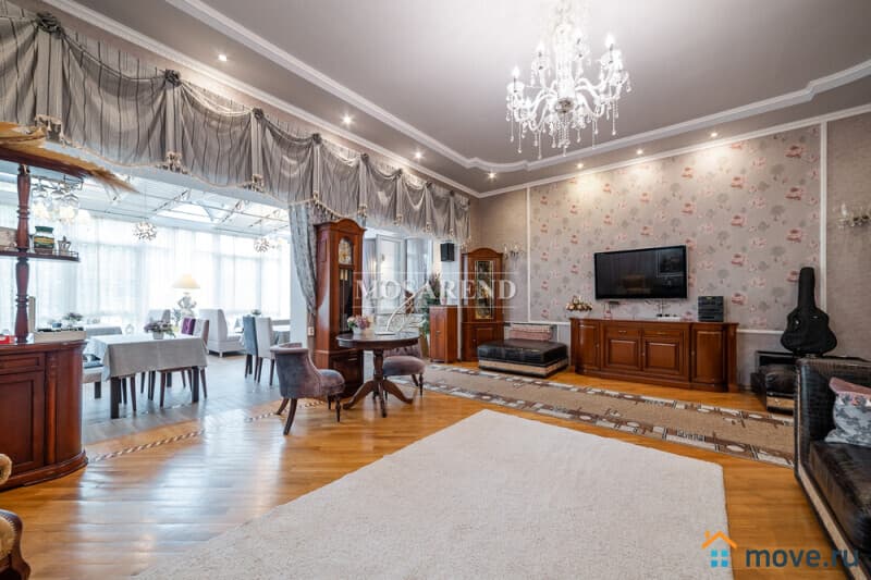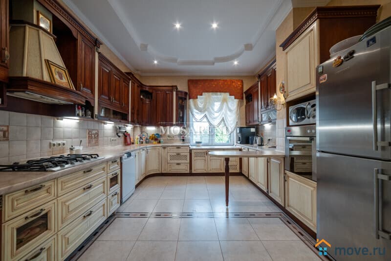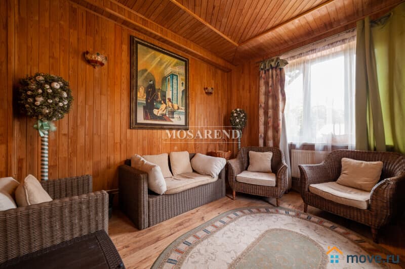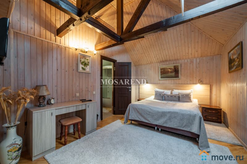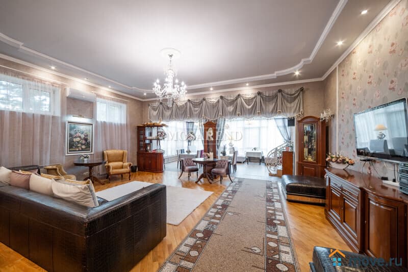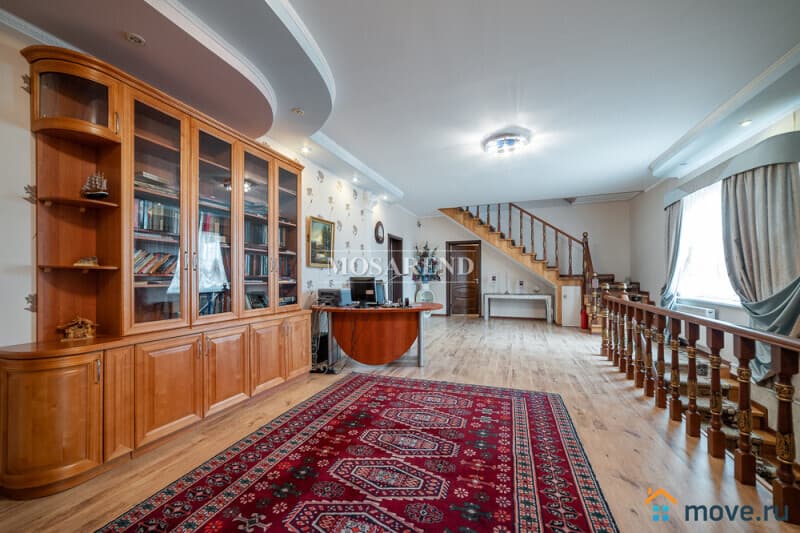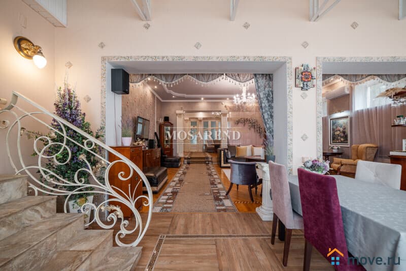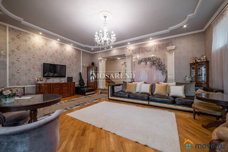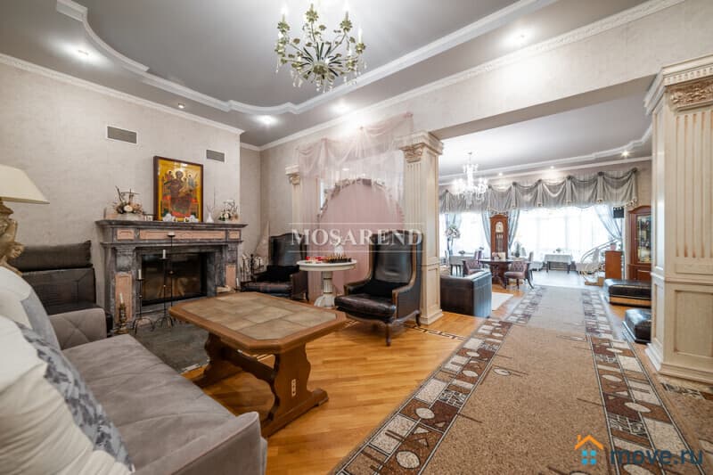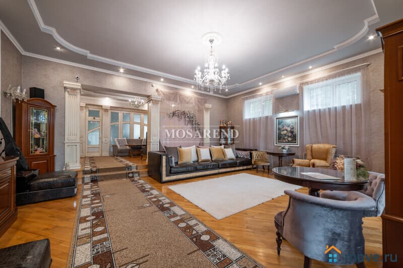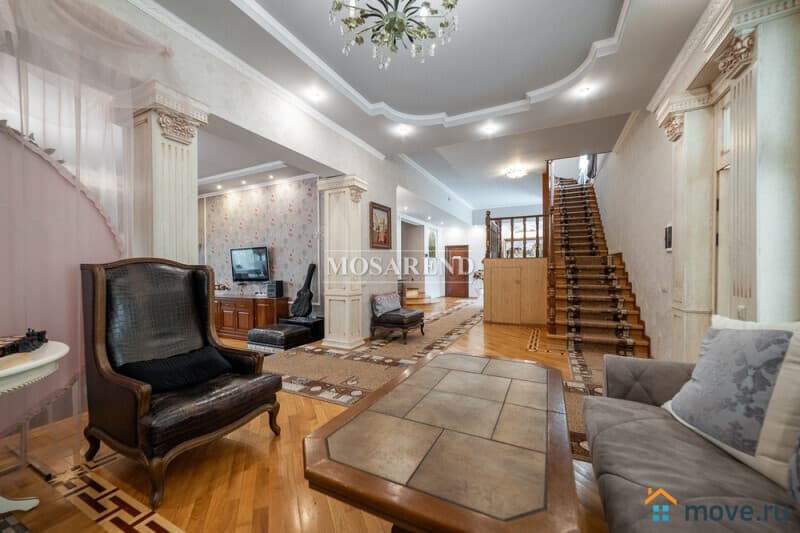 Уютный трёхэтажный коттедж площадью 1 000 м2 расположен в 13 км от МКАД по Варшавскому шоссе.