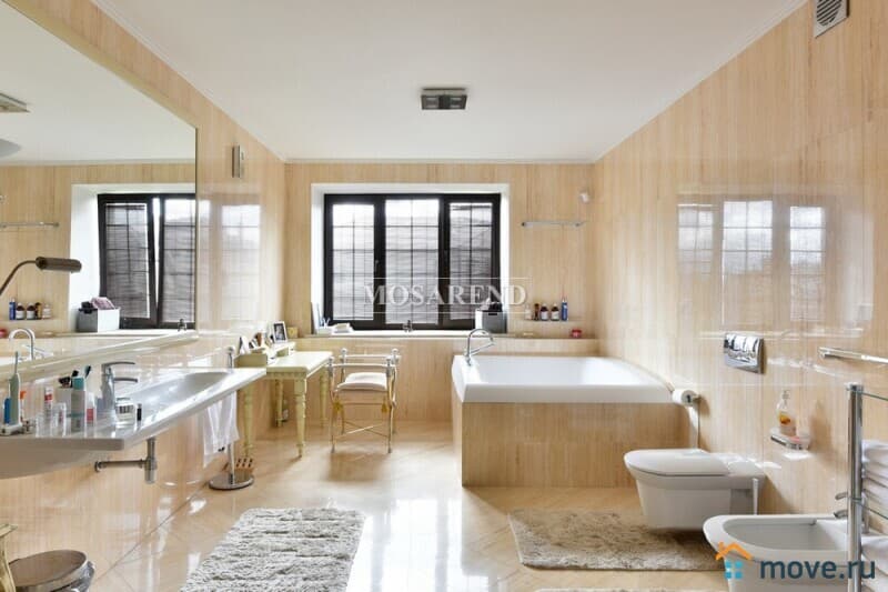 -5 спальных комнат (20-30 м2 каждая, в некоторых спальнях есть камин) с гардеробом и ванной комнатой, везде есть видео и стерео системы