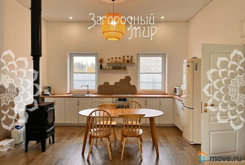 У дома кровля - металлочерепица, окна - тройные стеклопакеты. В доме большая кухня-гостиная с панорамным остеклением, 3 спальни, 2 санузла. Чистый и светлый дом полностью меблирован, оборудован всей необходимой техникой. К дому пристроена деревянная терраса. По всему дому смонтированы теплые водяные полы, которые подключены к электрическому котлу.