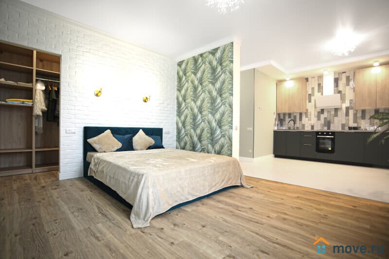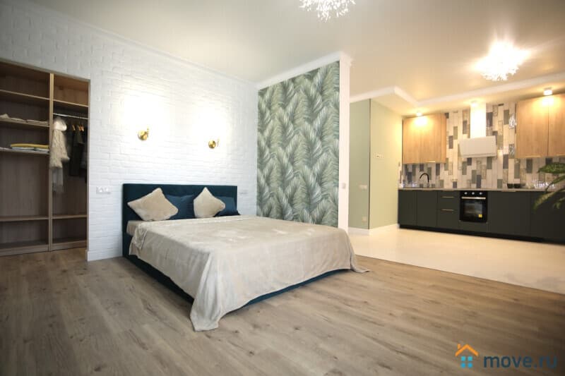В квартире легко можно установить раздвижную перегородку между комнатой и кухней, изолировав зону сна.