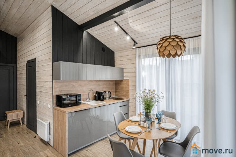 продуманное освещение, мягко подчеркивающее фактуры дерева.