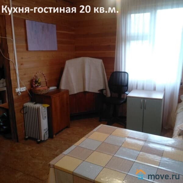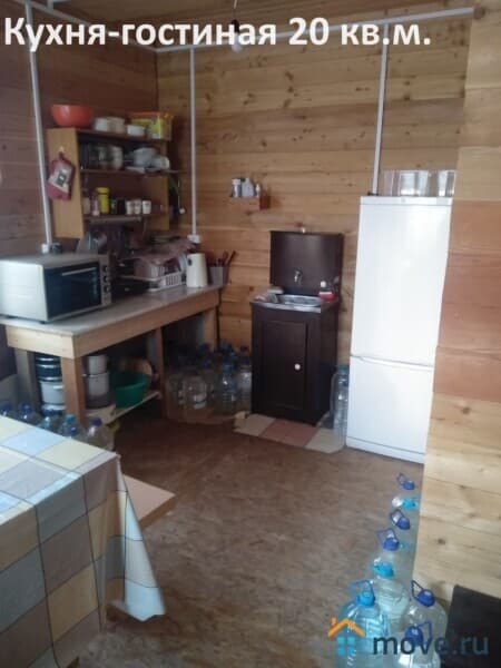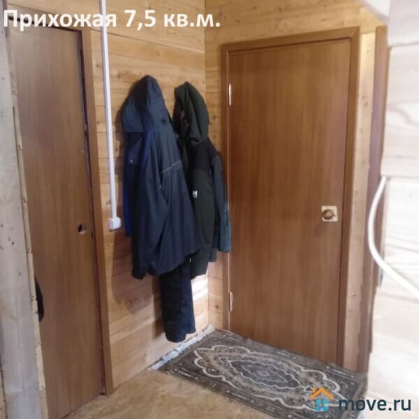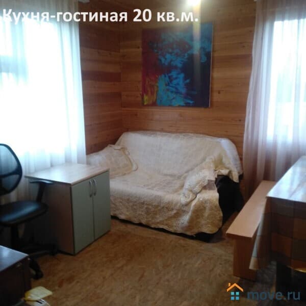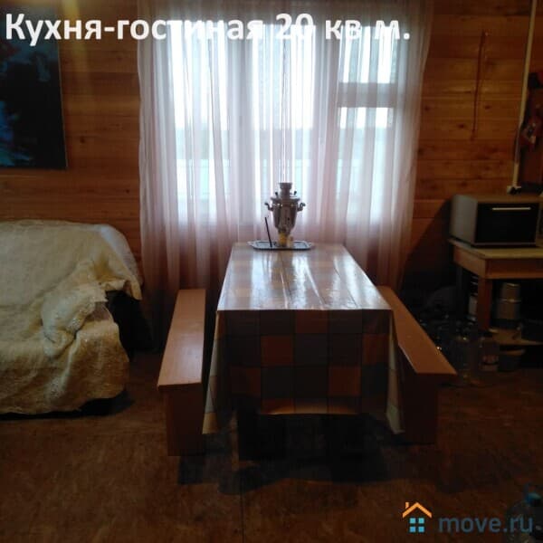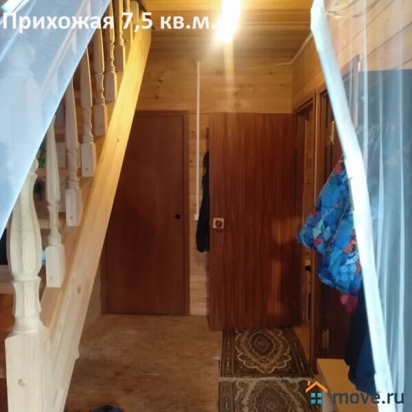 Первый этаж кухня-гостиная 20 кв.м. (диван, стол, лавочка, столешница, полка для посуды со светильником, кухонный шкаф, умывальник с подогревом, газовая плита, карниз, тюль, розетки, выключатели), комната 10,5 кв.м. (2 кровати, 2 матраца, компьютерный стол, стул, раскладной стул, карниз, тюль, шторы), спальня 9 кв.м. (2 кровати, 2 матраца, раскладной стул, карниз, тюль), помещение 6,5 кв.м. для размещения санузла (сундук, стойка), прихожая 7,5 кв.м. (бокс с интернет оборудованием, электросчетчик, вешалки для одежды, зеркало). Потолки 2,56 метров. Лестница добротная из клеёного дерева.
