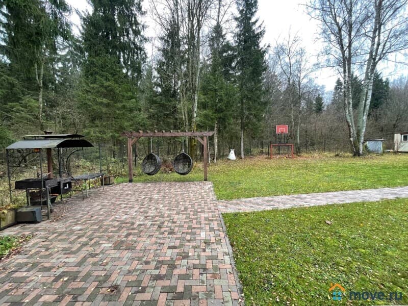 Участок 11 соток по документам и чуть больше в заборе. Ухожен, сделаны дорожки, есть большая площадка возле мангала с подвесными качелями, плодовые деревья и кустарники, автоматические ворота, парковка на 4 машины и обустроенная бытовка со стеллажами и полками. Вся площадь участка освещается ночью, а баня и качели имеют красивую подсветку!