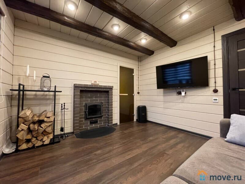 В доме высокоскоростной интернет и ТВ. На всем участке видеонаблюдение (5 камер). Отопление обоих домов управляется с приложения. В качестве альтернативного источника отопления в обоих строениях есть дровяная печь.