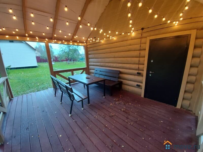 Баня 50 кв м (вместе с терассой). Сама баня 5,5 на 6 из сруба и терраса 5,5 на 4. В бане прихожая (тамбур), туалет, просторная комната отдыха и большая (11 кв м) совмещенная с душевой - парная.