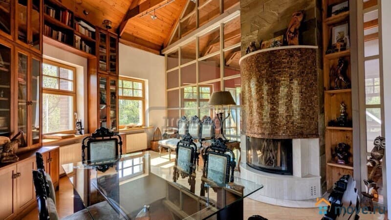 На 2-м этаже: просторный холл, спальня со своей ванной и с/у с выходом на балкон; кабинет, конференц-зал с камином; 3 спальни.