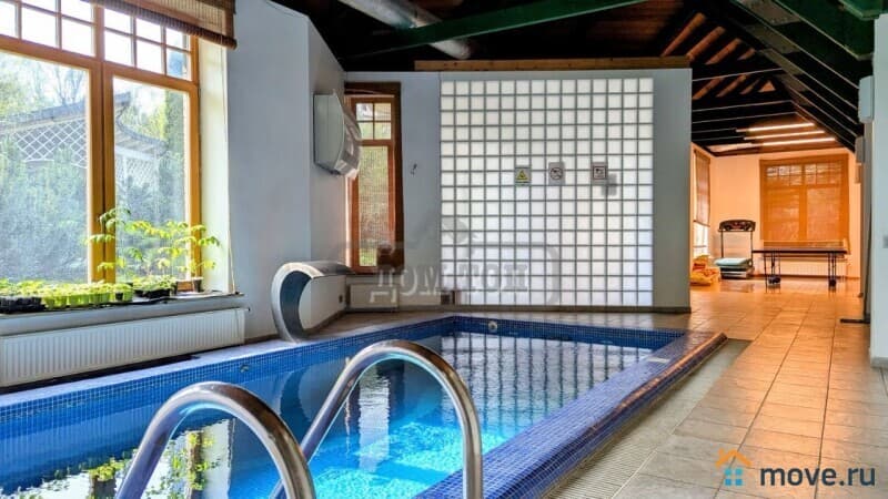 СПА-комплекс: отдельно сидящий, 2 этажа. Комната настольного тенниса, беговая дорожка. Подогреваемый бассейн 7*4*1,6 с противотоком, подсветкой, водопадом, сауна, с/у. Душевая, с/у. Просторная комната отдыха с камином, столом и лавочками.