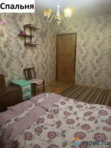 В комнате балкон, шкаф, кровать. В спальне шкаф, тумбочки, комод, стул, полки настенные. На кухне кухонный гарнитур, плита, холодильник, стол, стулья. В ванной стиральная машинка, зеркало, полки. В коридоре большой шкаф.