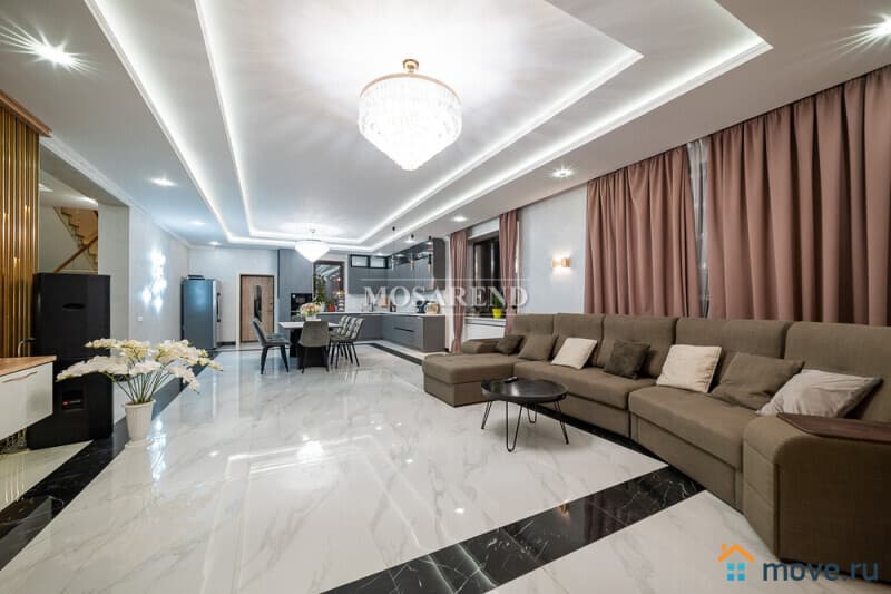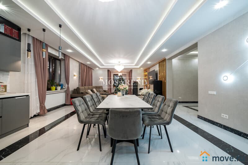 -на первом этаже: огромная кухня-гостиная площадью 72 м2 с банкетным размещением до 25 персон