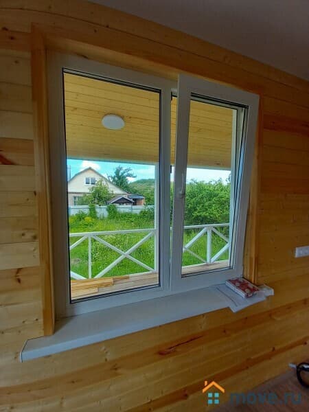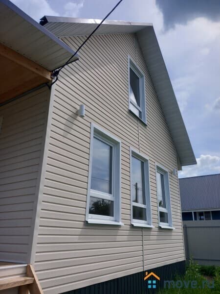 Дом построен по каркасной технологии на свайно-винтовом фундаменте, размеры 6х7.5 метра + веранда. Общая площадь 80 кв.м. Утепление 150мм (в 3 слоя) с ветро и влагозащитой. Внешняя отделка - сайдинг, внутренняя - имитация бруса. Фундамент - винтовые сваи (длина 4.5 метра). Металлическая входная дверь. Окна ПВХ, пол - ламинат, натяжные потолки. Первый этаж - кухня-гостинная, спальня, с/у; второй этаж - две изолированные комнаты.