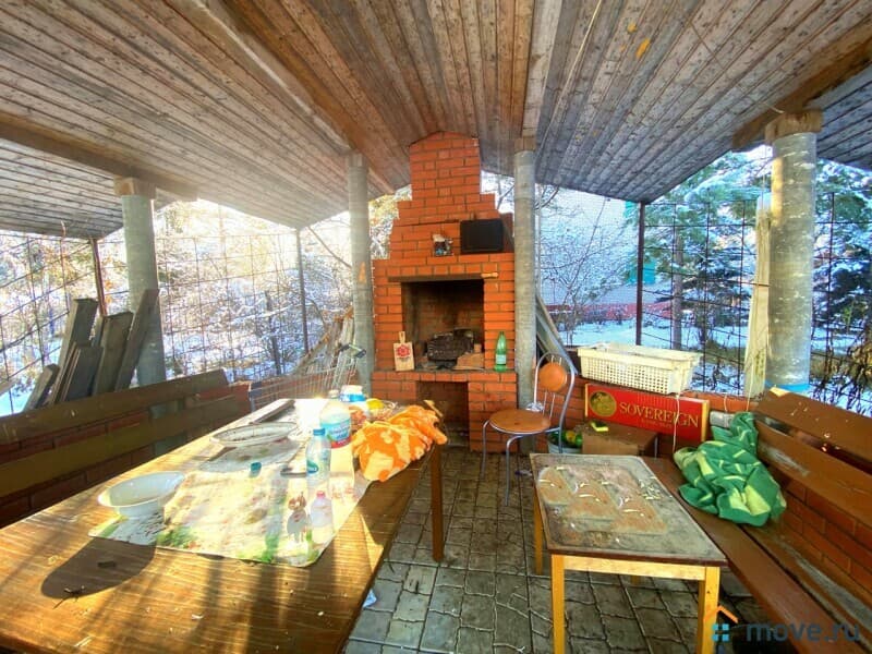 Расположен на участке 11 соток в СНТ, огорожен полностью. Так же есть гостевой дом, шикарная беседка с барбекю, идеальное место для семейного пикника или дружеской встречи на свежем воздухе, баня с электрической печью. Вода от скважины заведена в баню, гостевой дом и основной дом, сливается в септик (два колодца с переливом). На участке растёт жимолость, смородина, яблоня, декоративные кустарники.