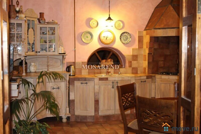 -1 этаж: гостиная 48 м2, кухня-столовая 20 м2 (газовая плита, духовка, аэрогриль, чайник, другая кухонная техника, холодильник, посуда), санузел, тёплый бассейн 3х8 м с зимним садом, инфракрасная сауна и душевая, веранда при кухне с садовыми качелями