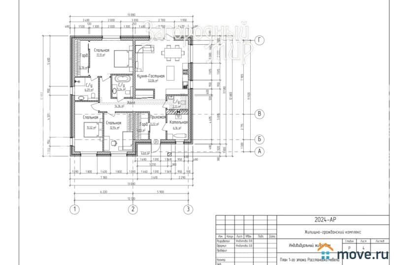 В доме просторная кухня-гостиная 32 кв.м с панорамными окнами, 3 спальни, одна из которых с гардеробной и санузлом, большой санузел, котельная.