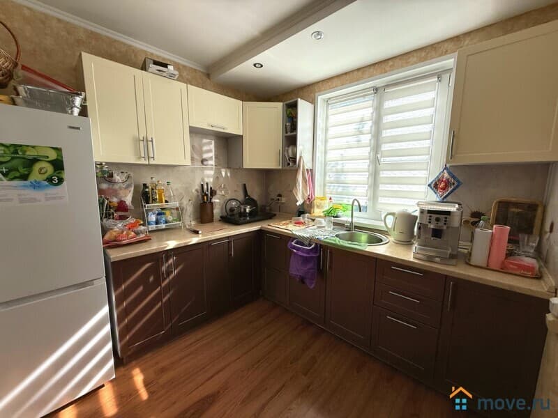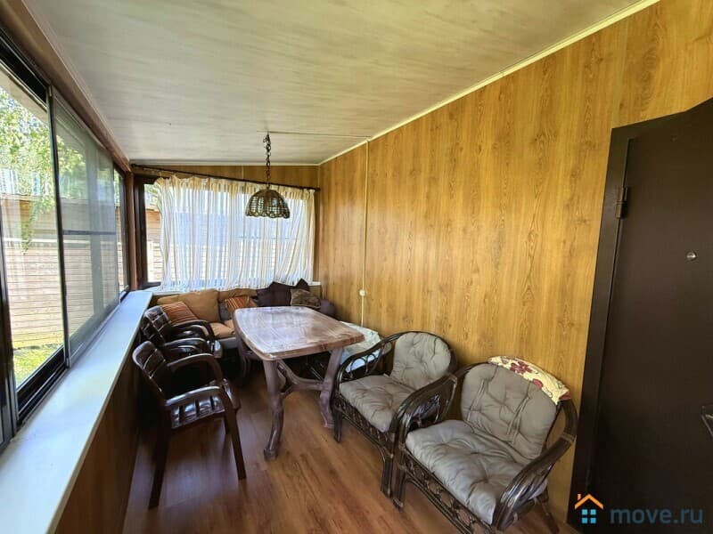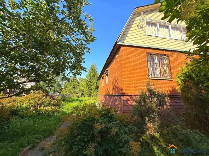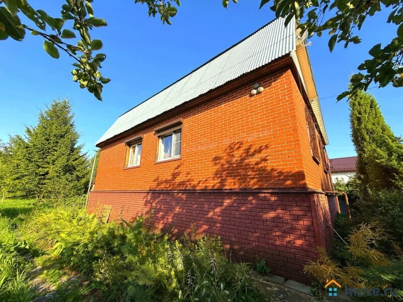Построен из кирпича (1этаж) и каркас (2этаж), надёжный блочный фундамент. На первом этаже: терраса, кухня, столовая, раздельный санузел, 3 спальни, просторная прихожая с удобной лестницей на второй этаж. На втором этаже (он летний): веранда, 2 спальни, мастерская и подсобные помещения. В доме электричество, центральное газовое отопление, вода заведена в дом от скважины (питьевая), горячая вода от электрического водонагревателя. Центральный водопровод по границе участка (есть возможность подключения). Также на участке есть колодец с технической водой.