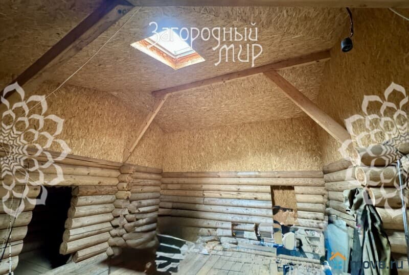 Комплекс возведен из северного леса, диаметр бревна 27 см. Размер постройки 15*18 м. Включает в себя баню с бассейном, спортзал, две спальни, три санузла, гостиную со вторым светом для приема гостей и патио с прекрасными видами.