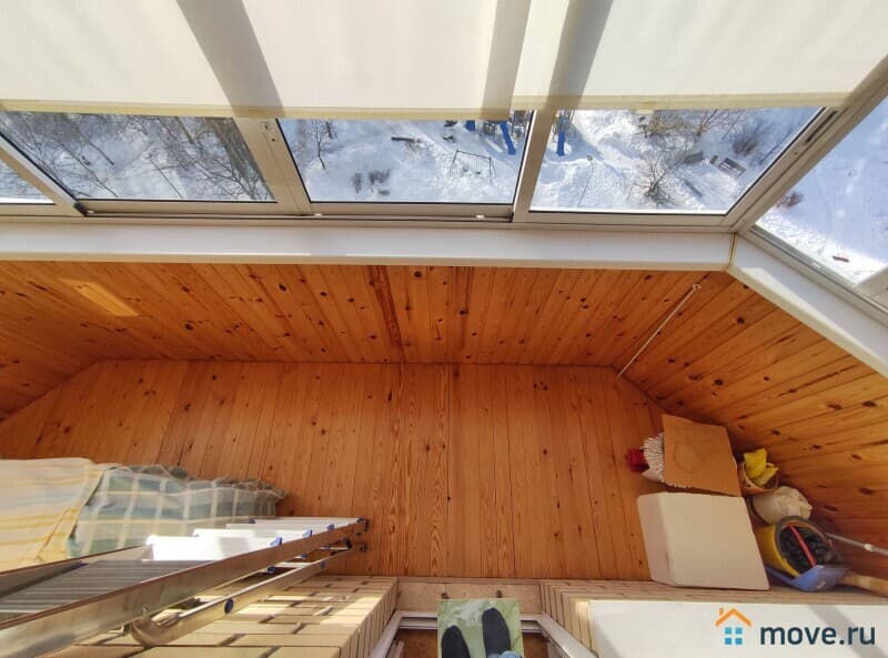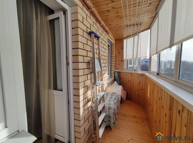 • комната с выходом на большой остеклённый балкон (балкон протяжён вдоль комнаты и кухни),