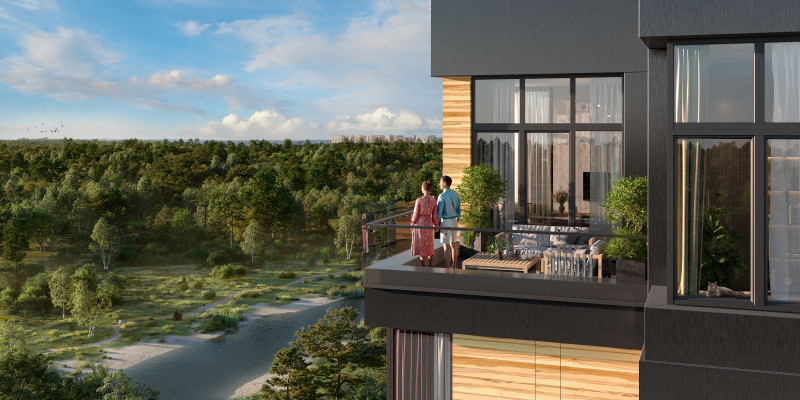 Природный пейзаж визуально динамичный. Сезон за сезоном изменяются цвета листвы и зелени, вырастают и исчезают снежные и ледяные покровы, пасмурная погода сменяется ярким солнцем или красивой облачностью. Чем выше квартира, тем лучше панорама, поэтому любителям природной эстетики лучше выбрать квартиру на высоком этаже.Например, в доме Светланы Захаровой в RussianDesignDistrictиз квартиры на 11 этаже (площадь 49 кв. м за 16,1 млн рублей) открывается вид на Ватутинский лесопарк и Десеновский парк площадью девять гектаров. Квартира с видом на эти экосистемы есть на восьмом и 12 этажах в доме Ирины Усмановой-Винер (от 58 кв. м за 15,7 млн рублей).
