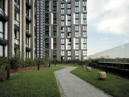 С каждым годом покупатели обращают все больше внимания на экологичность проектов. Некоторые из девелоперов, следуя за запросами клиентов, разбивают настоящие газоны на кровле. Это пока еще редкий, но весьма эффективный способ обеспечить необходимое сочетание городского комфорта и природной эстетики. Для озеленения подбираются неприхотливые и засухоустойчивые растения. Они высаживаются поверх георешетки с грунтом. Подобную концепцию реализует, например, MR Group. В малоэтажных корпусах 1-й и 2-й очереди ЖК «Селигер Сити» крыши украшены 175 декоративными растениями.