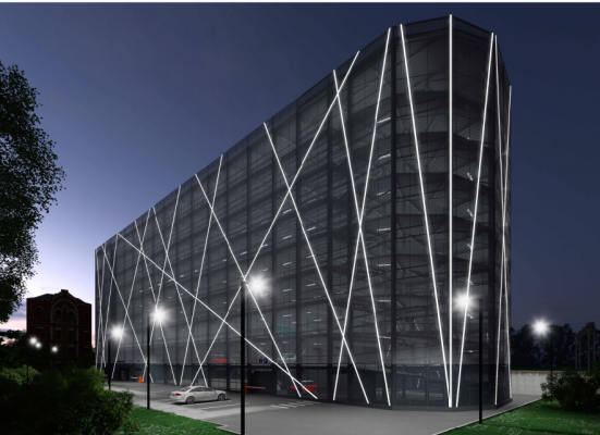 Новый многоуровневый паркинг общей площадью 16 600 кв. м, рассчитанный на 500 машиномест, построят с использованием металлокаркаса. Помимо девяти наземных этажей, в здании предусмотрены два подземных уровня. Его высота составит 30 м.