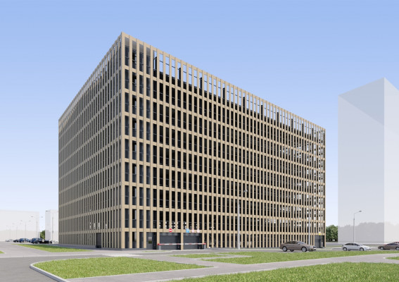 Здание имеет оптимальную прямоугольную форму. Фасады планируется отделать глухими и перфорированными кассетами из оцинкованного стального листа, окрашенными в желто-серый и антрацитовый цвета. Для удобства и безопасности автомобилистов в паркинге предусмотрены лифт и эвакуационная лестница.