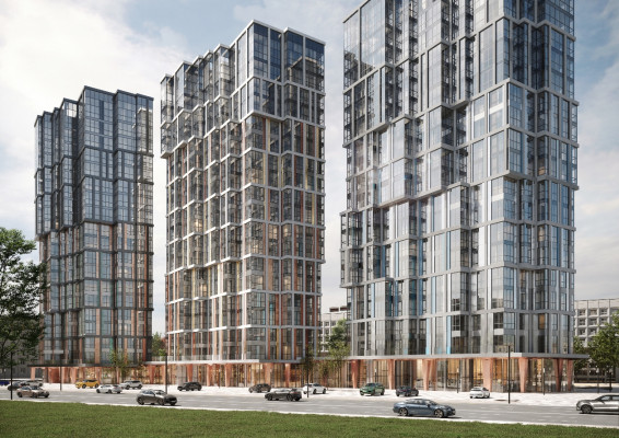 Природная составляющая определила и подход к решению фасадов жилого комплекса «UNO.Головинские пруды» на севере Москвы. Панорамные окна в обрамлении белого цвета формируют рисунок на фасаде, напоминающий эффект легкой ряби на поверхности воды, что подчеркивает соседство жилого комплекса с каскадом Головинских прудов.