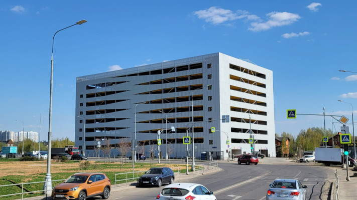 Сочетание беспрецедентного масштаба и архитектурного брутализма делают запоминающимся фасад девятиэтажного паркинга ЖК «Бунинские луга» (Новая Москва) от компании «Ферро-Строй». Общая вместимость двух очередей составит 1238 машиномест при площади более 33 тысяч кв. м. В 2023 году введена в эксплуатацию первая очередь. Здание построено с применением большепролетных конструкций на основе металлокаркаса. Фасад первой очереди облицован кассетами из перфорированного металлического листа. Оконные проемы образуют причудливый узор, напоминающий стрелы, рассекающие небо, или бурное течение горной реки. При этом сдержанные тона и подчеркнутая урбаничность облика паркинга отсылают к архитектуре брутализма, у истоков которой стоял знаменитый Ле Корбюзье.
