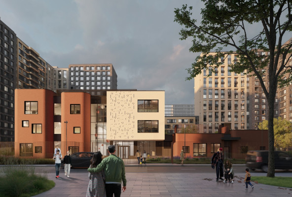 Архитектура детского сада в жилом комплексе «Преображенская площадь» – яркий пример современного подхода, при котором функциональность гармонично сочетается с эстетикой. Фасад здания выполнен в минималистичном стиле с акцентами на натуральные цвета. Большие окна обеспечивают естественное освещение во внутренних помещениях.Детский сад полностью адаптирован для маломобильных детей и вписывается в городскую концепцию «доступной среды».