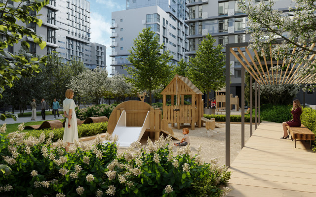 «Ландшафтный дизайн проекта разработан по принципу «Парк на пороге дома». Это двор-сад с разнообразными растениями, закрытый от машин. И территория насыщена функционалом. Внутри вписаны разновозрастные детские площадки из экологичных материалов с мягким покрытием, прогулочные зоны, места для отдыха с перголами, шезлонгами и гамаками. Также во дворе предусмотрены воркаут-зоны, площадка с теннисными столами, арт-объекты, малые архитектурные формы. При этом все увязано воедино продуманными дизайнерскими решениями», – рассказывает Дмитрий Можаров, директор по развитию компании Plus Development.