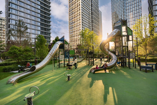 В частном дворе жилого квартала «Прайм Парк» открылась вторая детская площадка. Первое игровое пространство появилось здесь в 2021 году. Тогда рядом с четырьмя башнями проекта была построена небольшая игровая зона. В свою очередь, в мае 2025 года рядом с небоскребом Queen Elizabeth Park Tower сформирован по-настоящему масштабный комплекс для детей разных возрастов. Его площадь составляет 0,8 га. На территории площадки расположены аттракционы из нержавеющей стали, пластика и дерева, горки, пружинные качели, игровой домик, круглый батут, скамьи, шезлонги и др. Покрытие из резиновой крошки разного цвета, дренирует дождевую влагу во внутренний водосток и защищает от ушибов детей, в случае падения. Освещение ведется с помощью светодиодных светильников на столбах высотой 6 м. Это самый большой игровой объект на рынке премиальных новостроек Москвы.
