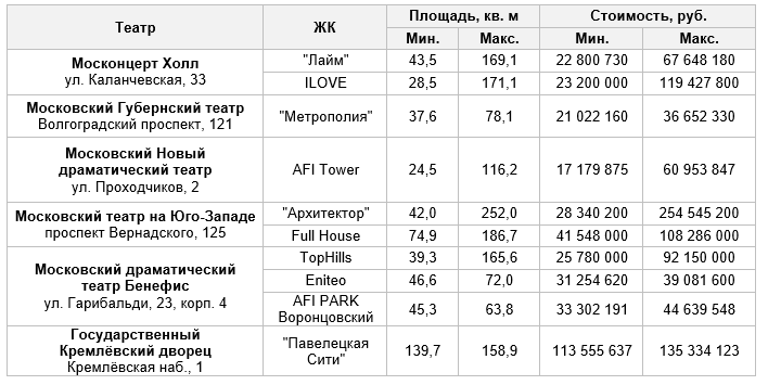 Специалисты департамента проектного консалтинга Est-a-Tet изучили театральную афишу столицы и подготовили подборку жилых комплексов бизнес-класса, жители которых смогут насладиться любимым сюжетом, не теряя много времени на дорогу.