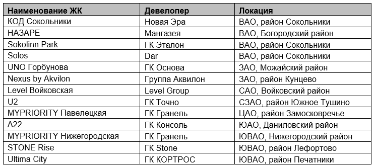 Так, например, в 4 квартале стартовали продажи квартир в жилом квартале КОД Сокольники от девелоперской компании Новая Эра и жилом комплексе NexusbyAkvilon.