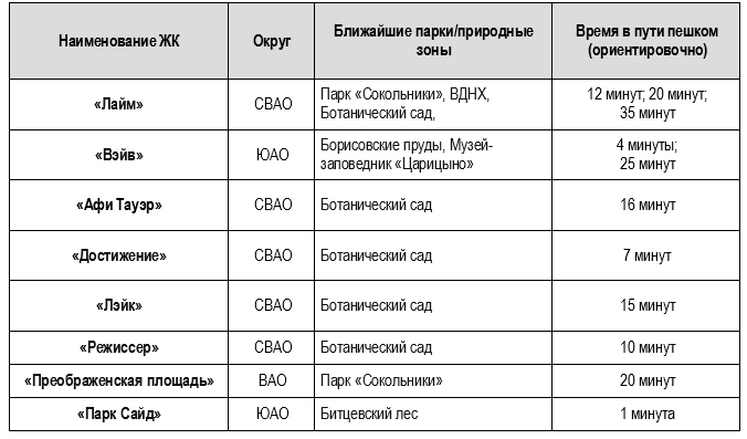 Среди проектов, которые находятся в непосредственной близости к парковым зонам, можно также выделить следующие: